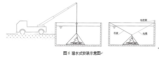 潛水式安裝,可免去橋架,采用潛水電機為動力,利用設備自重定位,安裝靈活方便,適用在水深較深且水質穩定,不含磨蝕性的水體,水溫不大于40℃,PH值6~9之間,其特點是無噪音,無視覺障礙。