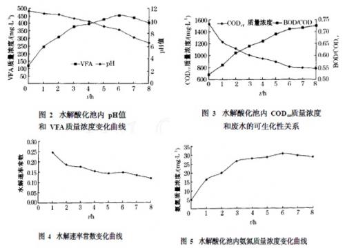 綜合以上因素,考慮到實(shí)際工程的經(jīng)濟(jì)因素和水解效果,本試驗(yàn)確定水解酸化池停留時(shí)間6 h為最佳停留時(shí)間.