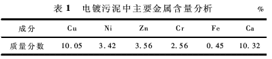 實驗用污泥取自常州市某電鍍廠的脫水污泥,經風干后研磨過0.150mm篩,然后在105~110℃下烘2h,放入干燥器中備用。以下實驗所用原泥均為烘干后污泥。原泥中主要金屬含量見表1。