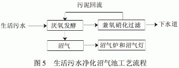 新型生活污水厭氧凈化池(或稱城鎮生活污水凈化沼氣池)是一種小型分散化污水處理裝置。生活污水凈化沼氣池是在化糞池和沼氣池的基礎上發展起來的,解決了化糞池處理效果差、 沉積污泥多、沼氣池沼氣回收率低的弊端,其工藝流程見圖5。具體參見http://www.bnynw.com更多相關技術文檔。