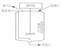 含甲醚廢水的生化降解性很差,必須經過預處理方可進入生化處理系統。由于本企業暫不設綜合生化處理系統,故擬選用化學氧化法對此廢水進行處理。根據本企業廢水的特點擬選用氧化分解法。甲醚易被氧化分解,且可使用的氧化劑較多。另外如條件許可,使用金屬陽極的電解氧化法也有很高的分解效率;瘜W氧化法使用的設備簡單,反應條件溫和,氧化分解效率很高。由于本企業的特殊性,回用水中應盡量少含其他離子,因而在可使用的各類氧化劑(如臭氧、氯系列氧化劑、過氧化氫等)中,不宜選用氯系列氧化劑,以防止氯離子的進入;另外從來源及成本考慮,也不宜選用臭氧。實驗證明使用過氧化氫作為氧化劑是可行的,但使用過氧化氫作為氧化劑時,需要使用催化劑,如采用Fenton 氧化法處理時,需添加亞鐵鹽作為催化劑,顯然在此不適用。選用過氧化氫作為氧化劑〔1〕,用紫外光(波長為270 nm)加以催化,可得到十分理想的結果。為安全起見,選用浸沒防水式紫外光燈,將其浸沒在氧化釜內部,防止紫外光外泄傷人。氧化反應釜的大致結構如圖1 所示。反應釜帶慢速攪拌(20~30 r/min),過氧化氫入口位于攪拌槳之下,以便使過氧化氫與廢水更好地接觸,防止過氧化氫分解。過氧化氫應分批加入,反應釜應設有排空管及取樣口。反應2~3 h 后,取樣分析,當COD 達到80 mg/L 以下時可認為處理合格,不再添加藥劑并停止攪拌。放出廢水到貯槽,測定pH,用硫酸或堿調pH 為7~8 后其可回用于循環冷卻水。