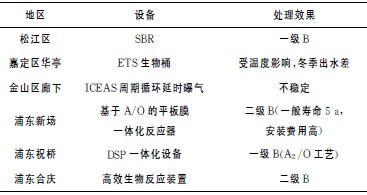 一體化污水處理設(shè)備,多數(shù)為江浙滬企業(yè)或上海高校生產(chǎn)研制,安裝維修相對(duì)比較方便,在穩(wěn)定運(yùn)行的情況下,出水能夠達(dá)到上海市生活污水排水標(biāo)準(zhǔn),占地面積小,但是設(shè)備投資、運(yùn)行費(fèi)高,維修管理專業(yè)性要求高,詳見表3。