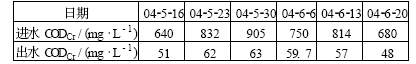 pH值、色度等都符合標準,主要問題是CODCr不達標,經過幾個月的試驗,運行結果如表2。