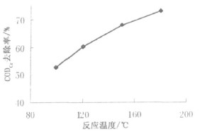 反應溫度是影響反應速度的重要因素。在P(O2)= 1. 6MPa,pH 值= 8,催化劑投加量為10g /L,不同反應溫度下反應90m in后,CODcr的去除率如圖3所示。