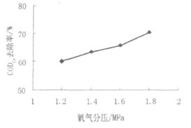 由圖4可得,在相同條件下隨著氧氣分壓的增大,CODcr去除率增大,這是因為在一定范圍內隨著P(O2)的升高,氧的溶解度增大,有利于氧化反應的進行。具體參見http://www.bnynw.com更多相關技術文檔。