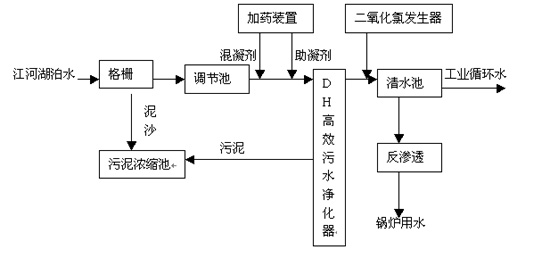 一、隨著水資源的日益緊張,自來水價格不斷上漲,這給生產性企業特別是用水大戶帶來沉重的負擔。同時變換中的水價也給企業成本控制帶來不確定因素。另一方面,江南地區的大部分企業廠址附近都有河流或湖泊,只是水質較差,無法直接作為工業用水。利用本所設計的DH凈化器作主體設備的工藝流程,可以經濟高效的處理江河湖泊水使其滿足工業用水的要求,對于用水大戶的企業來說是一大福音。