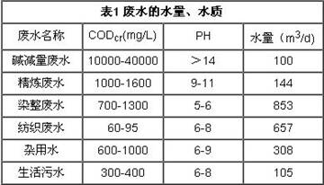 某外資公司為生產仿真絲滌綸布的紡織印染企業,其生產廢水有以下幾股:紡織廢水、堿減量廢水、精煉廢水、染整廢水、雜用水。此外還有來自宿舍樓、食堂、浴室、辦公樓等處的生活污水。各股廢水水質水量情況見表1。