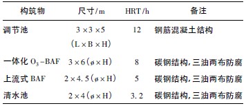 表2 主要構(gòu)筑物和設(shè)計(jì)參數(shù)