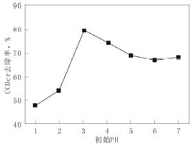 2.1、初始pH對腈綸廢水CODCr去除的影響