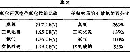 經(jīng)過凈化處理后的醫(yī)療廢水還含有大量的細(xì)菌、病毒、寄生蟲卵和有毒有害物質(zhì).必須經(jīng)過消毒處理方可排放。目前常用的消毒劑主要是臭氧、二氧化氯、氯氣和次氯酸鈉等。殺菌效果如表2所示。