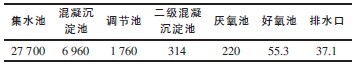 主要工藝參數包括混凝單元的加藥量和生物處理單元的水池容積。