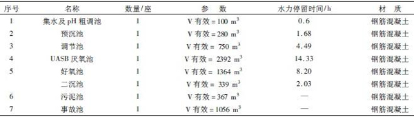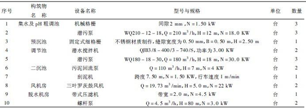 根據相關設計規范進行設計,該工程的各個單體的主要設計參數如表2 所示,主要配套設備如表3 所示。