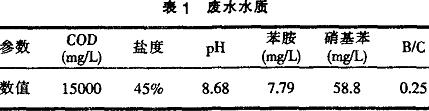 試驗(yàn)用橡膠促進(jìn)劑生產(chǎn)廢水取自青島某橡膠助劑廠廢水池,其水質(zhì)見(jiàn)表1