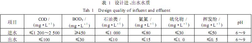 該公司煉油生產裝置排放的廢水水量約為300m3 /h,設計進、出水水質見表1。要求出水水質執行《污水綜合排放標準》( GB8978—1996)的一級標準。