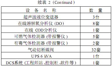 廢水處理廠設置了一套DCS系統,對工藝運行過程進行集中監控與管理。操作室布置系統操作員站2個(其中1個兼作工程師站),機柜室布置控制柜、端子柜等。主要儀表設備見表2。