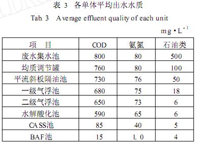①該煉油廢水處理廠在物化段采用隔油/兩級氣浮工藝,有效去除了油污染,保證了進入生化段的油含量<10mg/L;生化段采用水解酸化/CASS/BAF工藝,具有廢水處理彈性大、運行穩定、自動化程度高、處理效果好等特點。