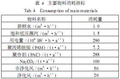 運行過程中的主要物料消耗情況見表4。