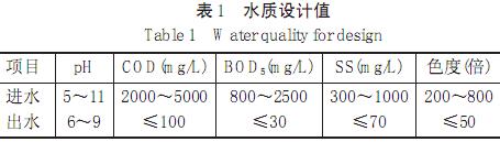 設計水量為400m3/d。構筑物流量20.0m3/h(以20h計算),設計水質見表1。