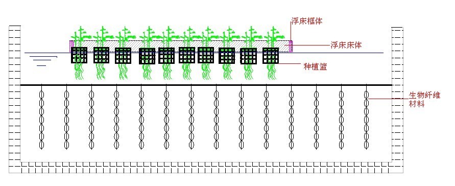 (1)生物纖維材料具有高比表面積,吸附性能強,適應微生物生長及高強度等特點,完全解決了傳統的生態浮島存在的問題;