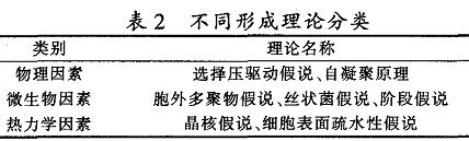 顆粒污泥的形成過程是一個包含物理、化學(xué)和生物作用的復(fù)雜過程,這個過程可以看作是在流體動力條件下.微生物自固定所形成的生物體聚團(tuán)現(xiàn)象。由于操作條件、反應(yīng)器類型、進(jìn)水水質(zhì)、培養(yǎng)目的不同,因此現(xiàn)有的形成機理并不能詮釋所有顆粒污泥的形成情況。表2對不同的理論作了一個歸類。