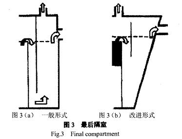 最后一個(gè)隔室,一般選用如圖3所示的結(jié)構(gòu)即可,如果擬處理的廢水污泥沉降性能較差,可選用圖3(b)所示的結(jié)構(gòu),以減少污泥流失。