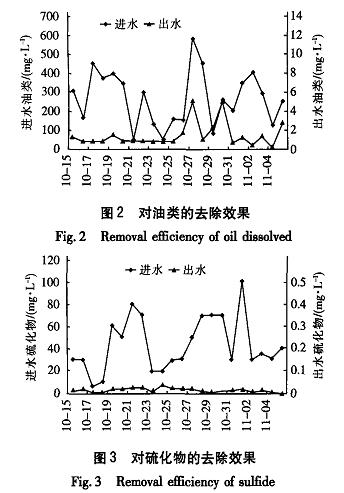 石油類為生物難降解物質,它可造成生物呼吸困難、污泥生長緩慢,從而造成對BOD,、COD的去除率下降,因而一級處理效果的好壞,直接影響后續生化處理能否正常運行,也影響了整個污水處理系統運行的穩定性。設計采用隔油及氣浮工藝去除大量的油脂、懸浮物及部分COD,同時減輕硫化物對生物的毒害作用,并在均質罐中進一步完成均質和除硫工作,從而保證進入生物處理區的污水能夠滿足生化處理的要求。
