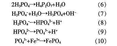 王萍對海綿鐵除磷過程進行了實驗研究.認為錳砂對海綿鐵去除水體中的磷具有催化作用。并得到了最佳的工藝條件:海綿鐵粒徑為1.5him,m(海綿鐵):m(錳砂)=10:1,溶液pH為6~7。在此條件下.海綿鐵與錳砂混合物對磷的吸附容量>9mg/g,磷的去除率達到89%以上。王萍等還對海綿鐵除磷過程的機理進行了探討.動力學實驗結果表明.海綿鐵對磷的吸附過程符合Langmuir等溫方程,屬于物理化學吸附。經掃描電鏡分析發現,吸附磷后的海綿鐵表面明顯覆蓋一層膜,由此推測,海綿鐵在吸磷過程中發生了一系列化學反應,生成的FePO絮凝沉淀于海綿鐵表面。牛曉君等認為海綿鐵去除磷的化學反應過程可能為: