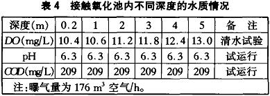 對生化接觸氧化池內不同高度處的水質進行測定,結果見表4。