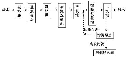 龐各莊污水處理廠位于北京市大興區龐各莊鎮區南部,在原有污水廠占地范圍內改擴建而成,總占地面積58512m2,總投資7149萬元污水廠處理規模近期為1.1萬m3/d,遠期1.4萬m3/d主要處理城市污水,生物處理采用厭氧+微曝氧化溝工藝,污水廠工藝流程見圖1。