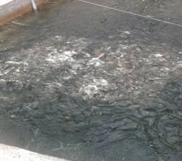 經過兩周的穩定運行,研究人員往兩個大池子中共放入鯉魚魚苗四千斤,開曝氣和回流,一周后開始喂食和定期檢測水質,檢測水質主要指標為氨氮和亞硝酸鹽,并定期檢測池中pH、溶解氧、總磷、COD、總氮等數據。