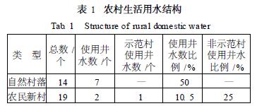 農村生活用水主要來自于兩方面,其一是自來水,目前所調研的村莊都通上了自來水;其二為地下水(如井水等),主要用作雜用水,如洗衣、洗拖把等。農村生活用水比例如表1所示。