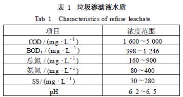 湖南長(zhǎng)沙縣城市固體廢棄物處置場(chǎng)位于長(zhǎng)沙縣安沙鎮(zhèn),主要接受星沙開發(fā)區(qū)的生活垃圾。該場(chǎng)于2002年8月開始運(yùn)行,平均填埋量為400 t/d,滲濾液產(chǎn)生量為10~80 m3/d,其滲濾液的基本性質(zhì)見表1。
