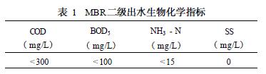 本實驗進水為MBR處理焚燒廠垃圾滲濾液后的出水,MBR 的膜組件是聚丙稀材質的中空纖維膜。出水生物化學指標見表1。