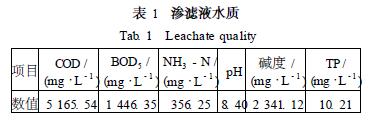 試驗用水為重慶市南岸區騎龍村城市垃圾衛生填埋場的垃圾滲濾液。滲濾液水質情況見表1。