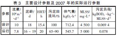 主要設(shè)計(jì)參數(shù)及2007 年實(shí)際運(yùn)行參數(shù)見(jiàn)表3。
