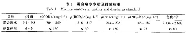某發(fā)制品有限公司生產(chǎn)發(fā)條、化纖發(fā)套、教習(xí)假發(fā)等發(fā)制品。廢水主要來(lái)源于蝕酸工序、染色工序、洗發(fā)工序,以及生活污水。混合廢水水質(zhì)和排放標(biāo)準(zhǔn)見(jiàn)表1