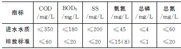 表1 進水水質及排放標準