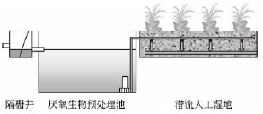 圖1 厭氧生物過濾預處理+潛流人工濕地處理工藝