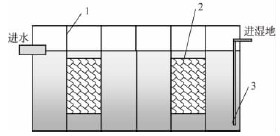 農村地區(qū)未經處理的生活污水嚴重污染了土壤、地表水和地下水,是造成農村環(huán)境污染的重要原因之一。人工濕地污水處理技術是20世紀70年代興起的一種新型生態(tài)污水處理技術,由于具有對污染物去除效果好、基建和運行費用低、工藝設備簡單、維護管理方便等特點,正逐漸被應用于廣大中小城鎮(zhèn)和鄉(xiāng)村地區(qū)的生活污水處理中。潛流人工濕地作為人工濕地的一種類型,因其充分利用了濕地的空間,發(fā)揮了系統(tǒng)間的協同作用,使污水處理能力得到大幅度提高,且占地面積相對較小,因而在污水處理中已經得到了廣泛的應用。目前,江南大部分農村地區(qū)都建有化糞池,由于化糞池出水中有機物、SS等污染物濃度均較高,如果出水直接進入潛流人工濕地,將會對人工濕地的運行造成較為嚴重的影響,在較短時間內即會造成濕地堵塞,嚴重影響濕地使用壽命。因此,在濕地前增加一道預處理,有效降低污染物濃度,可以大大延長人工濕地的使用壽命,并且保證人工濕地的出水效果。