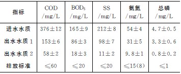 表2 進出水水質及排放標準