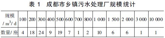 目前, 小型鄉(xiāng)鎮(zhèn)污水處理廠的建設(shè)與運(yùn)行得到越來越廣泛的關(guān)注, 鄉(xiāng)鎮(zhèn)污水的排水體制多為合流制,進(jìn)水水質(zhì)、水量波動(dòng)較大。成都市2009~ 2010 年建設(shè)的鄉(xiāng)鎮(zhèn)污水處理廠共108 座, 處理規(guī)模為100~10 000 m3 / d, 污水處理廠規(guī)模及數(shù)量見表1。具體參見http://www.bnynw.com更多相關(guān)技術(shù)文檔。