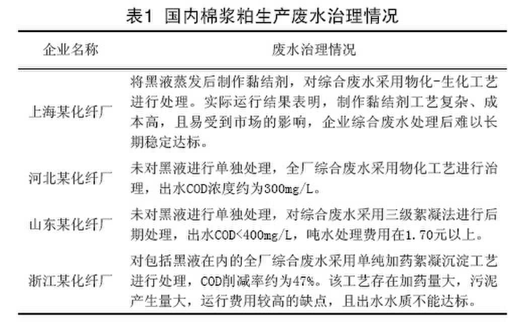 棉漿粕廢水處理方法2國內棉漿粕生產企業廢水治理現狀