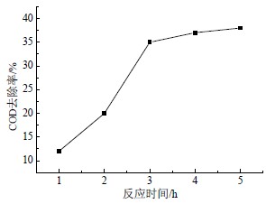 在不加酸調節(jié)pH 的條件下,考察微電解反應時間對COD 去除率的影響。實驗結果見圖2。