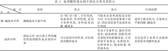 鋼材酸洗廢水處理技術:早期,對于含酸1%以下的酸性工業廢水一般采用化學中和法進行處理。具體方法有:酸、堿廢水中和、投藥中和、過濾中和等。其中過濾中和一般適用于含油和鹽較少,含酸濃度不高(硫酸小于2g/L鹽酸、硝酸小于20~30g/L)的酸性廢水,該法一般不用于鋼鐵酸洗廢水處理。前兩種方法的處理原理和優缺點等見表1。