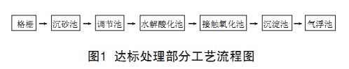 該公司現(xiàn)有的污水處理系統(tǒng)運轉(zhuǎn)良好,出水CODCr在40mg/L以下,色度低于25倍,完全滿足國家一級排放 標(biāo)準(GB4287-1992)。工藝流程見圖1。