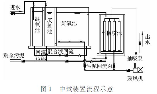 美國SyRacuSe大學的StaveRgeR教授于1971年發表文章,詳細論證了膜生物反應器在處理城市污水方面的優勢。在國內,研究人員研究了MBR強化脫氮除磷的研究,周飛飛等研究了MBR-RO組合工藝深度處理高碳高氮廢水的研究,但到目前尚未見到用平板膜研究城市污水的研究報道,本研究在南方水務有限公司所屬深圳市坂雪崗污水處理廠建立了以倒置A2/O-MBR(平板膜)為核心的單元式再生水處理中試研究基地(以下簡稱為系統)。系統采用進口平板膜,對膜出水COD、NH+4-N、TN、TP、SS進行了研究,以期為以MBR(平板膜)為核心的生物反應器污水資源化技術提供優化工藝和技術參數選擇,同時也為現有的污水廠升級改造提供可靠的運行經驗。