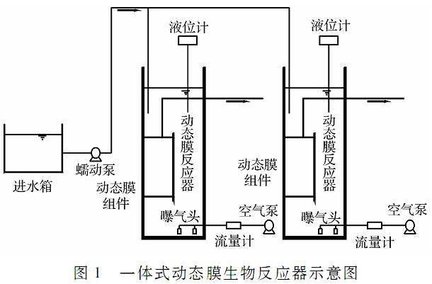 實驗選用反應器尺寸為10cm*15 cm*35 cm,有效容積為4L的一體式動態膜生物反應器。具體裝置如圖1所示,膜組件為方形結構,以尼龍篩網(孔徑90微米)作為膜材料,膜面積為0.0048m2。具體參見http://www.bnynw.com更多相關技術文檔。