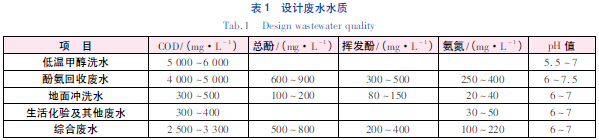 內蒙古某煤制尿素工程廢水主要包括低溫甲醇洗水、酚氨回收廢水、地面沖洗水、生活化驗及其他廢水,綜合廢水量為360 m3/h,設計水質見表1。