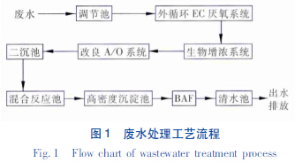 ①工程實例證明,采用EC 厭氧/生物增濃/改良AO/混合沉淀/BAF 處理煤化工廢水,處理效果好、運行穩定,可以使出水水質達標排放。