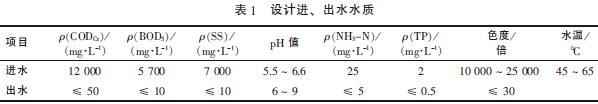 企業(yè)的廢水量為4 000 m3/d,其中生產(chǎn)廢水量為3 800 m3/d,生活污水量為200 m3/d,平均廢水量約為170 m3/h,設(shè)計(jì)進(jìn)、出水水質(zhì)見表1。